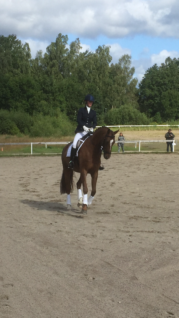 Varit på tävling i Fjälkestad med Santos. Red en LB:1 idag och fick fina 76,25% och vann klassen!